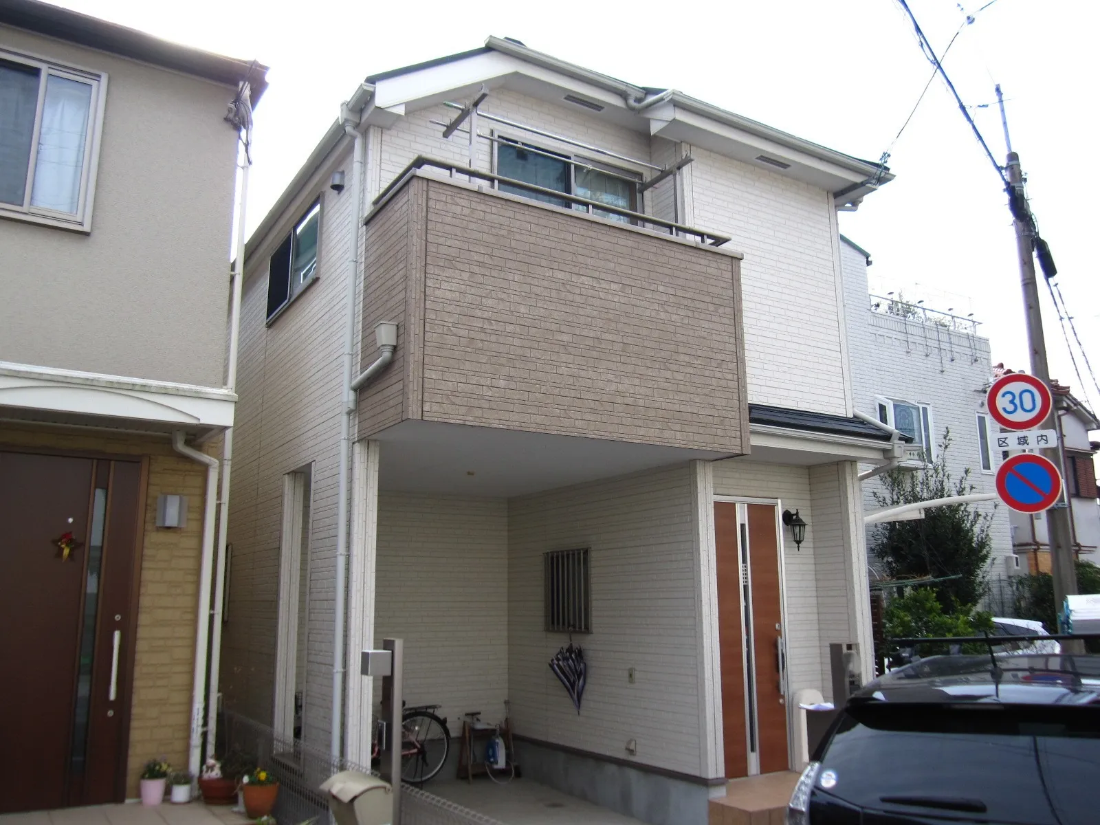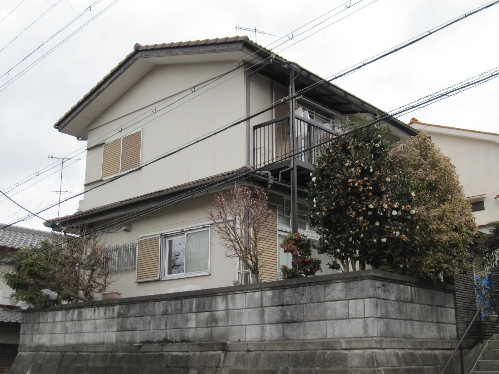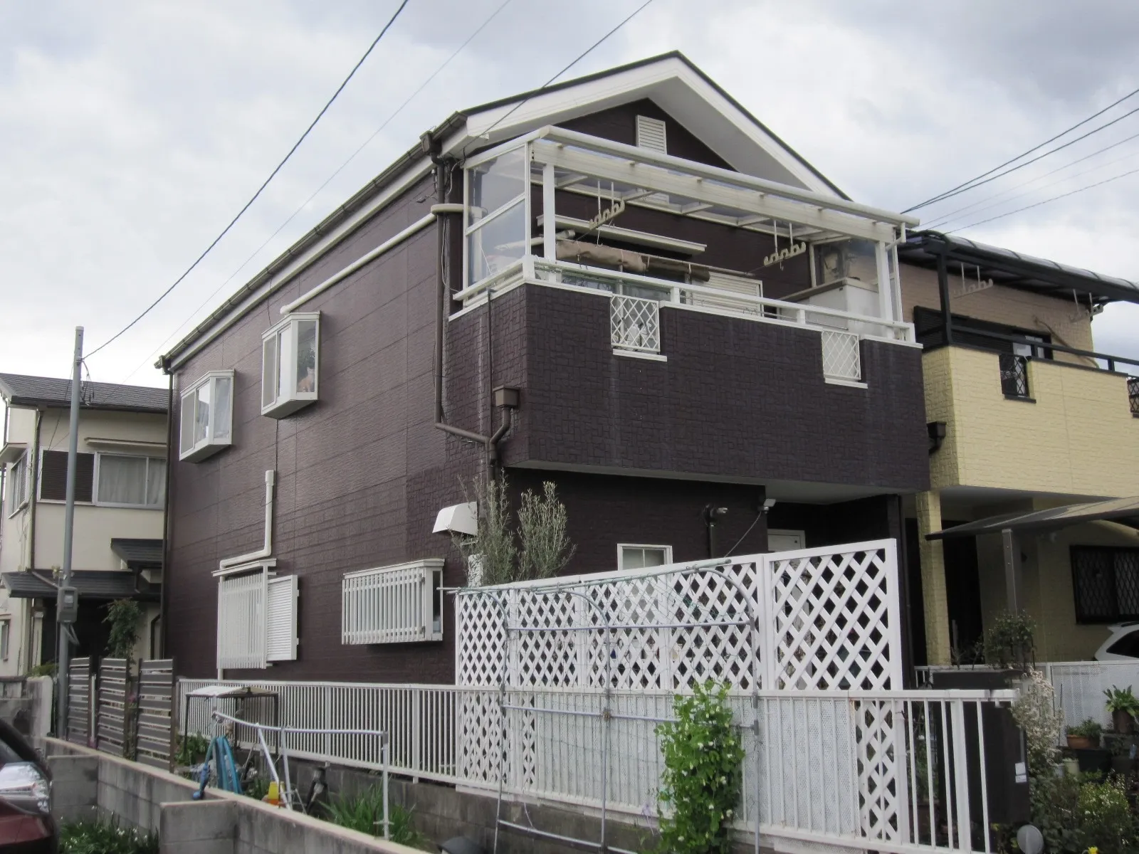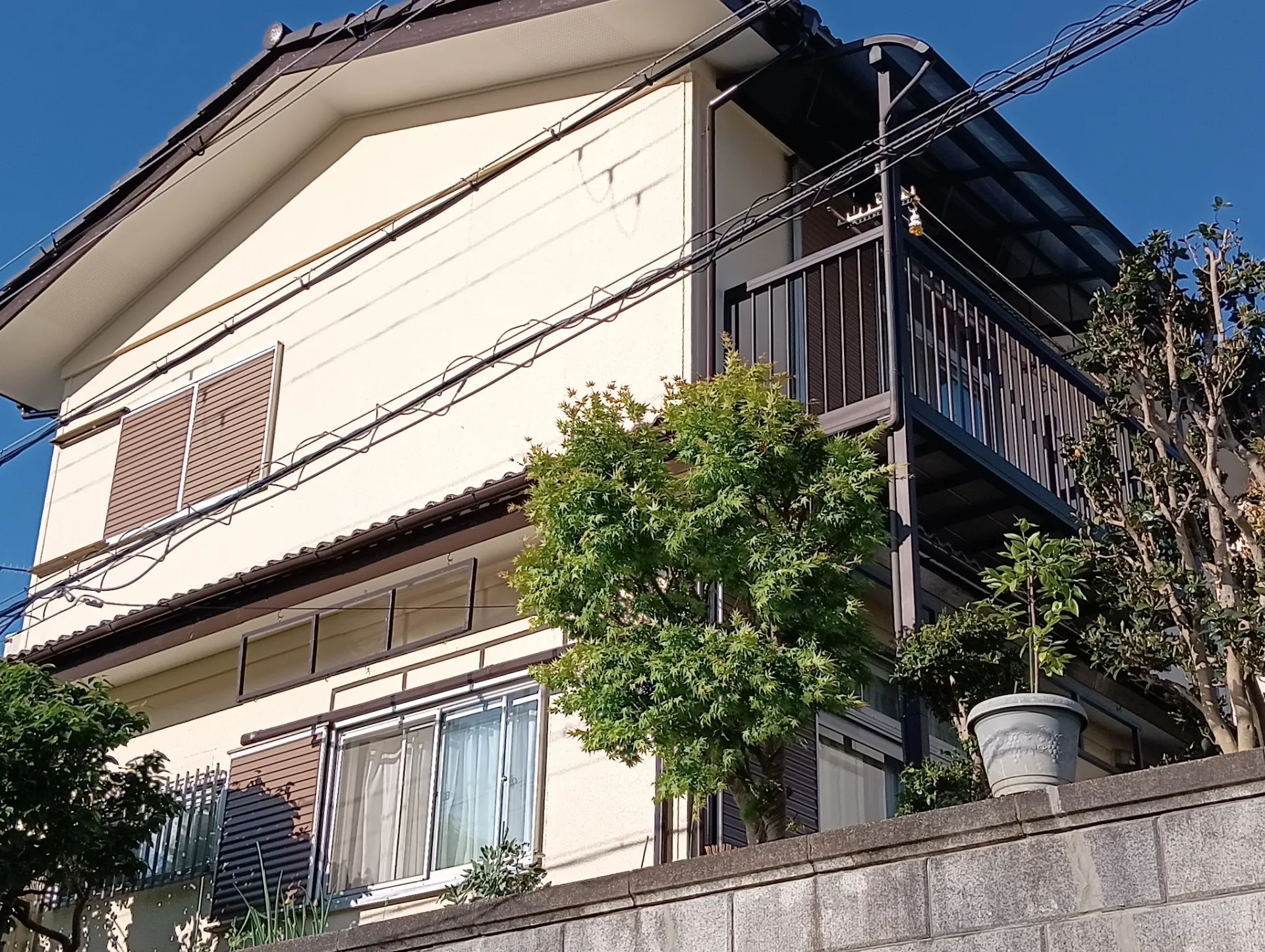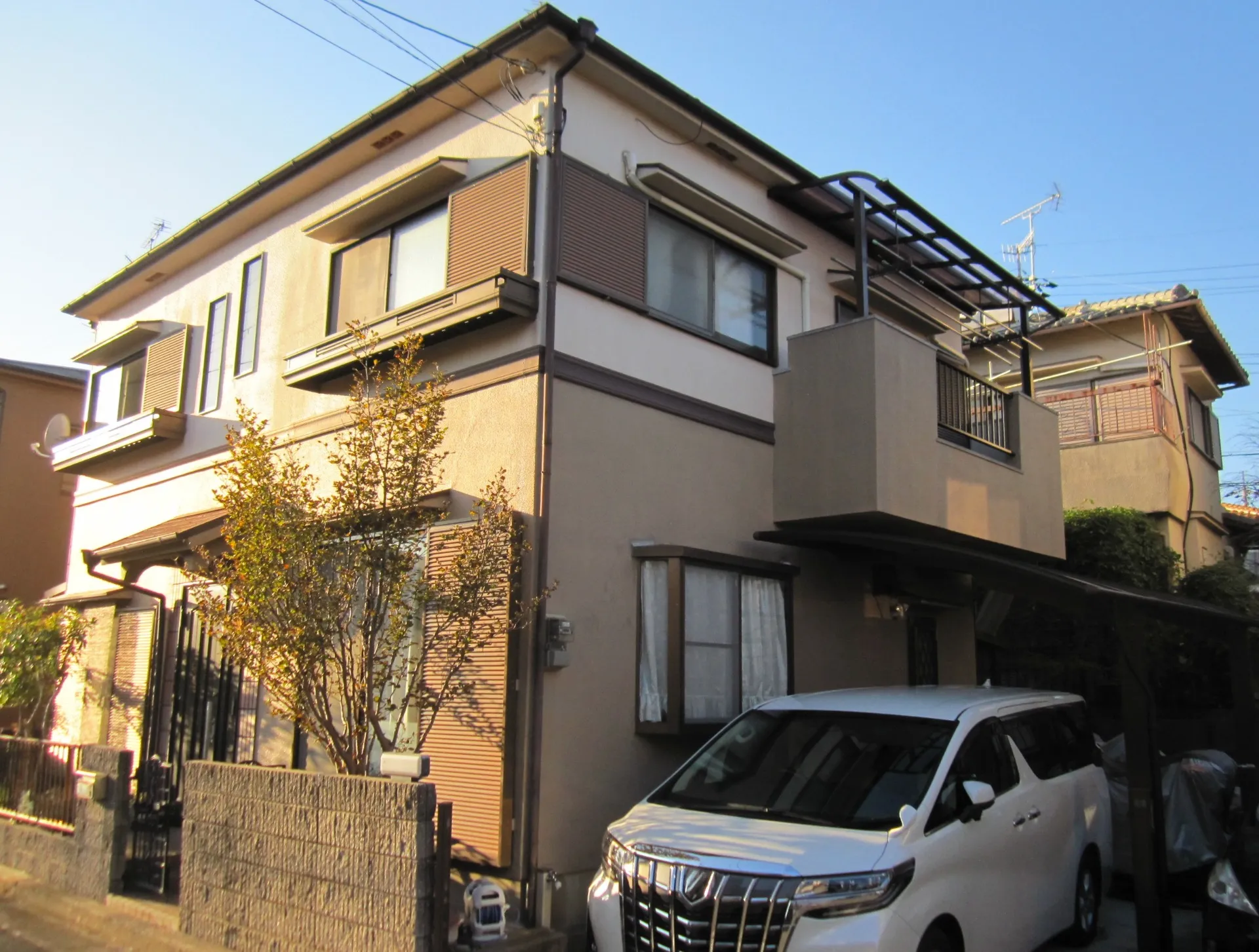 巻き上げ式シャッター雨戸(塗装を行うと、これまでのシャッター使用で発生している雨戸表面の傷がかえって目立ち、塗装したことを後悔する場合が多いとお教え頂いたので)を除いた外壁塗装とベランダの防水工事をお願いしました。