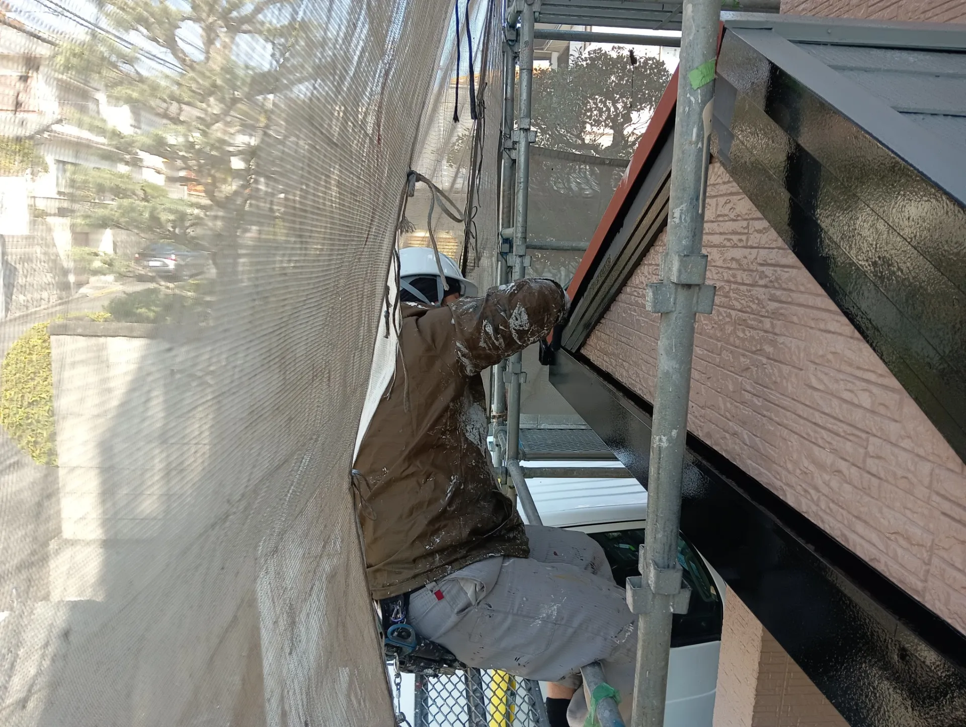 兵庫県川西市S様邸 付帯部分の上塗り塗装を進めております