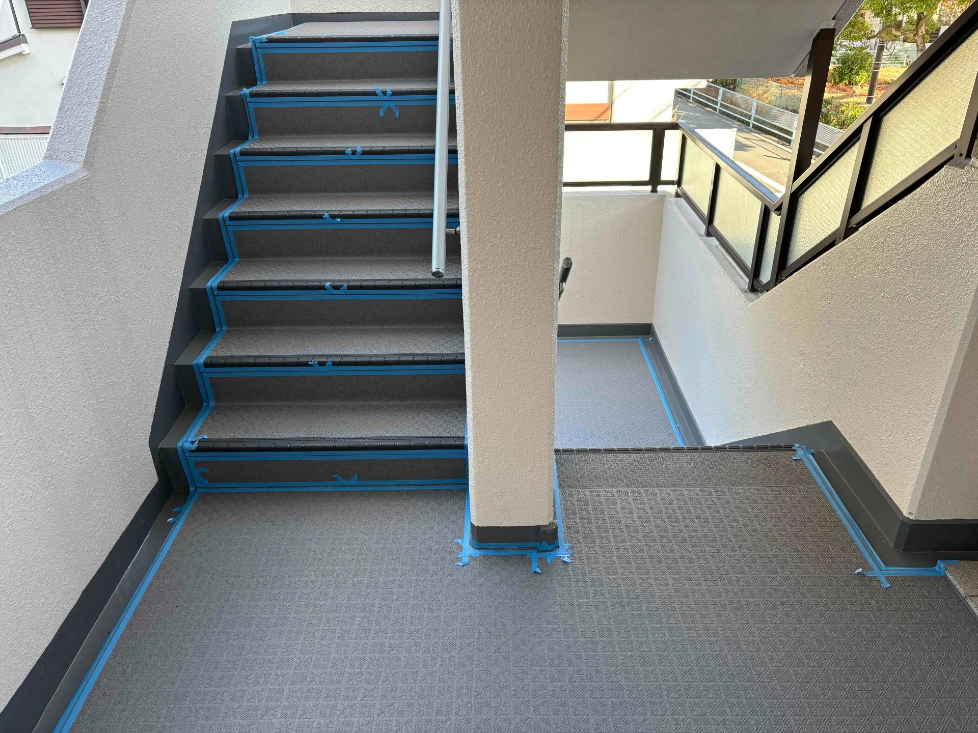 兵庫県西宮市マンション 長尺シートのシーリング工事を進めております