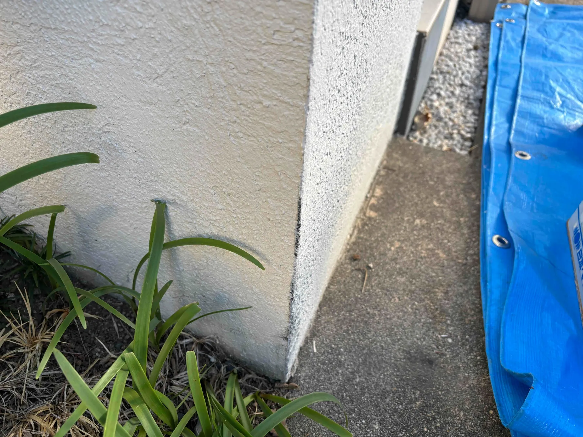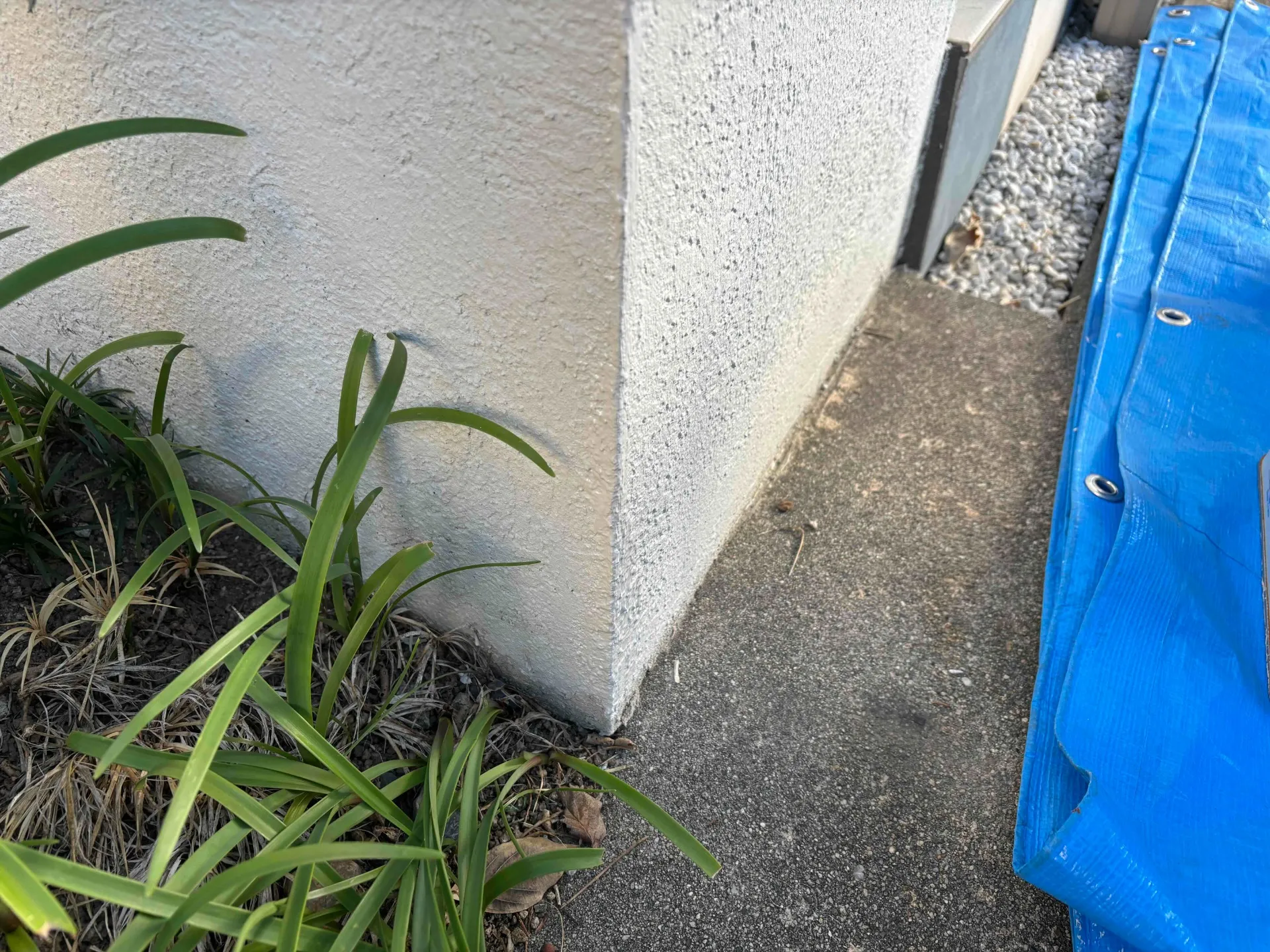 ガレージ内へお車を駐車される時に塗装済みの塀に少しだけこすってしまい、黒い色が付いてしまったとお聞きいたしましたので、本日その部分だけの塗装へお伺いいたしました