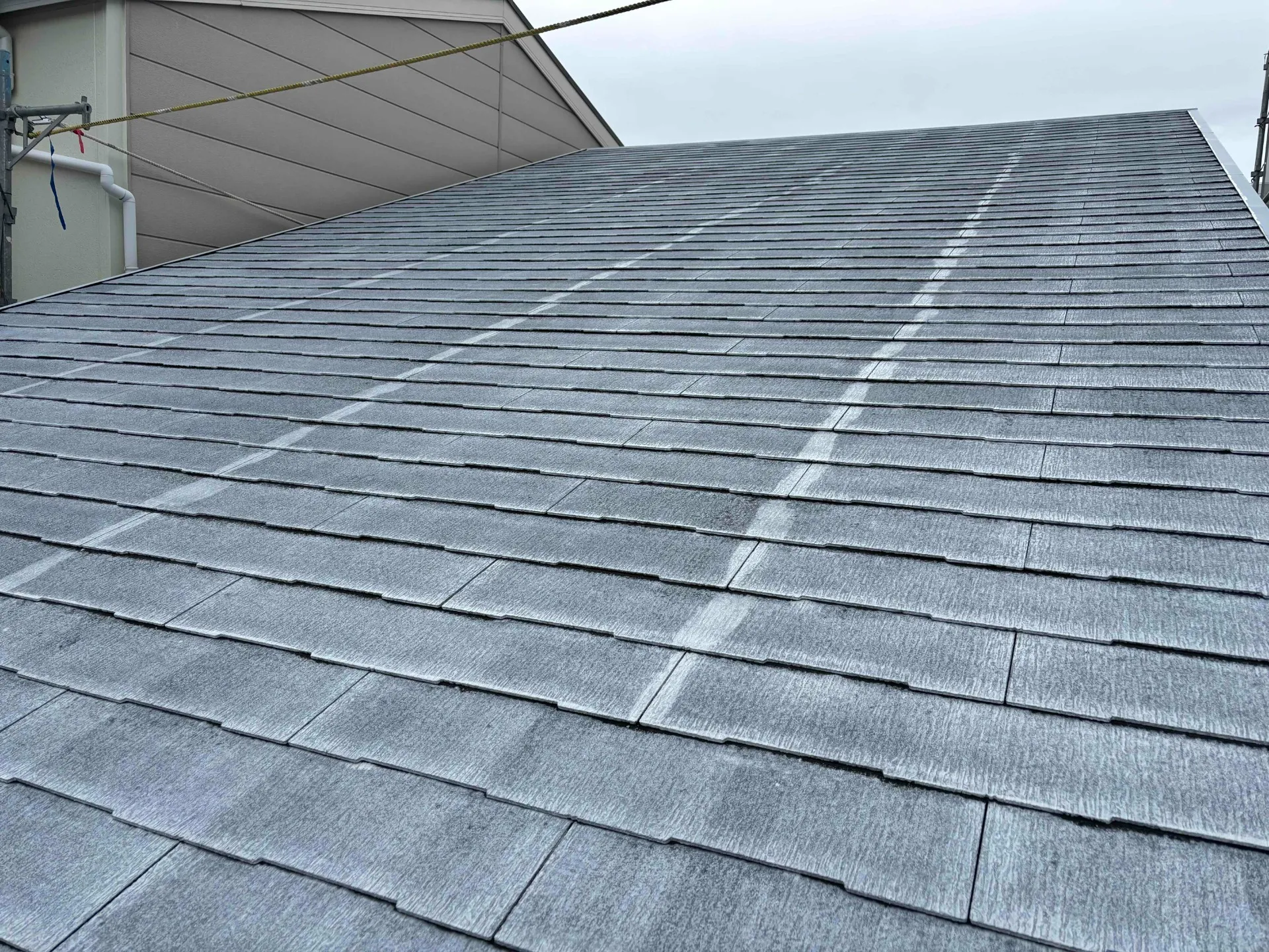 高圧洗浄が終わり、現在は屋根の下塗り塗装と鉄部への下塗り塗装(錆止め)を進めております
