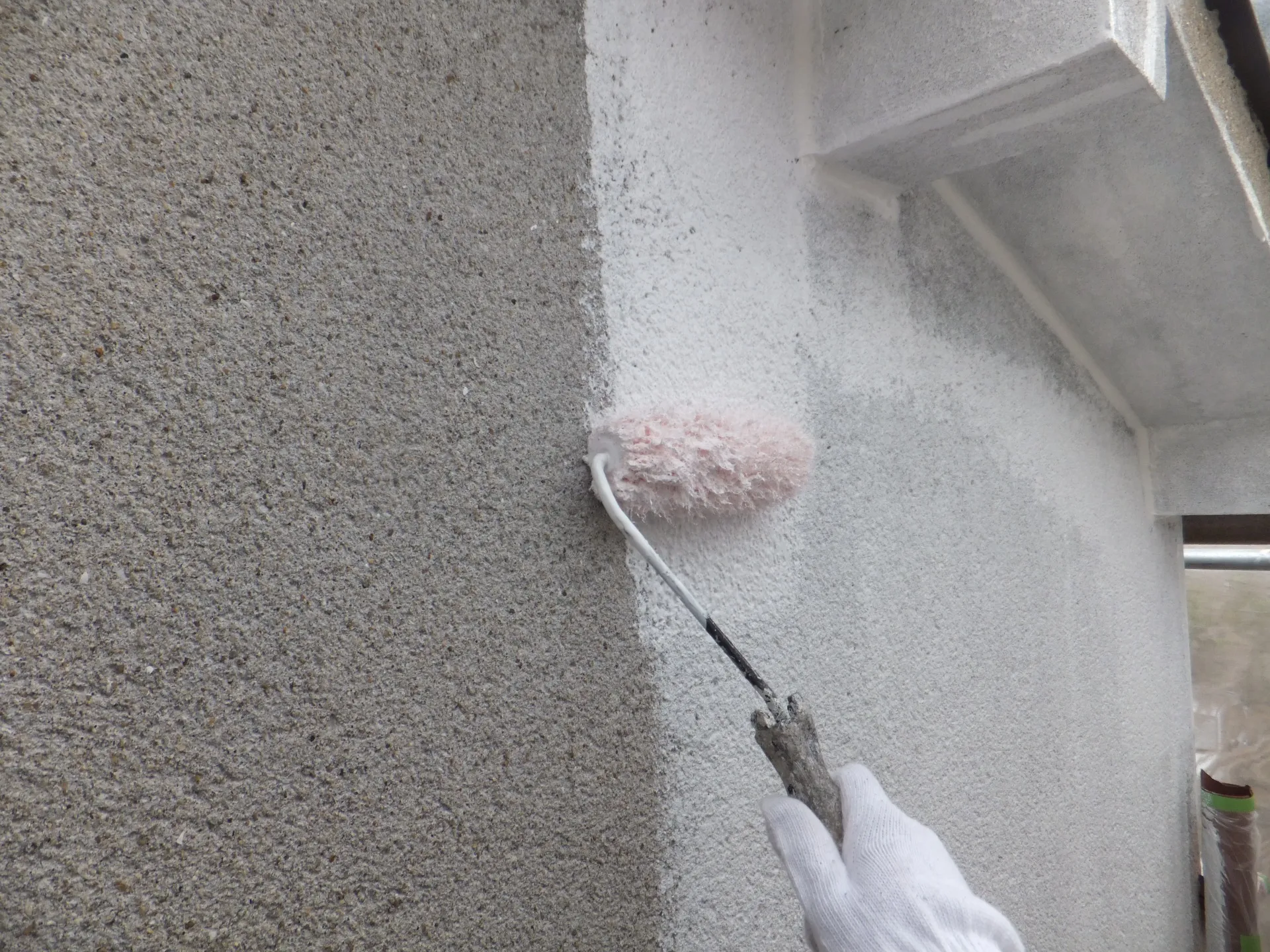 外壁の劣化具合などを考慮いたしまして、外壁の下塗り塗装を2回行っております