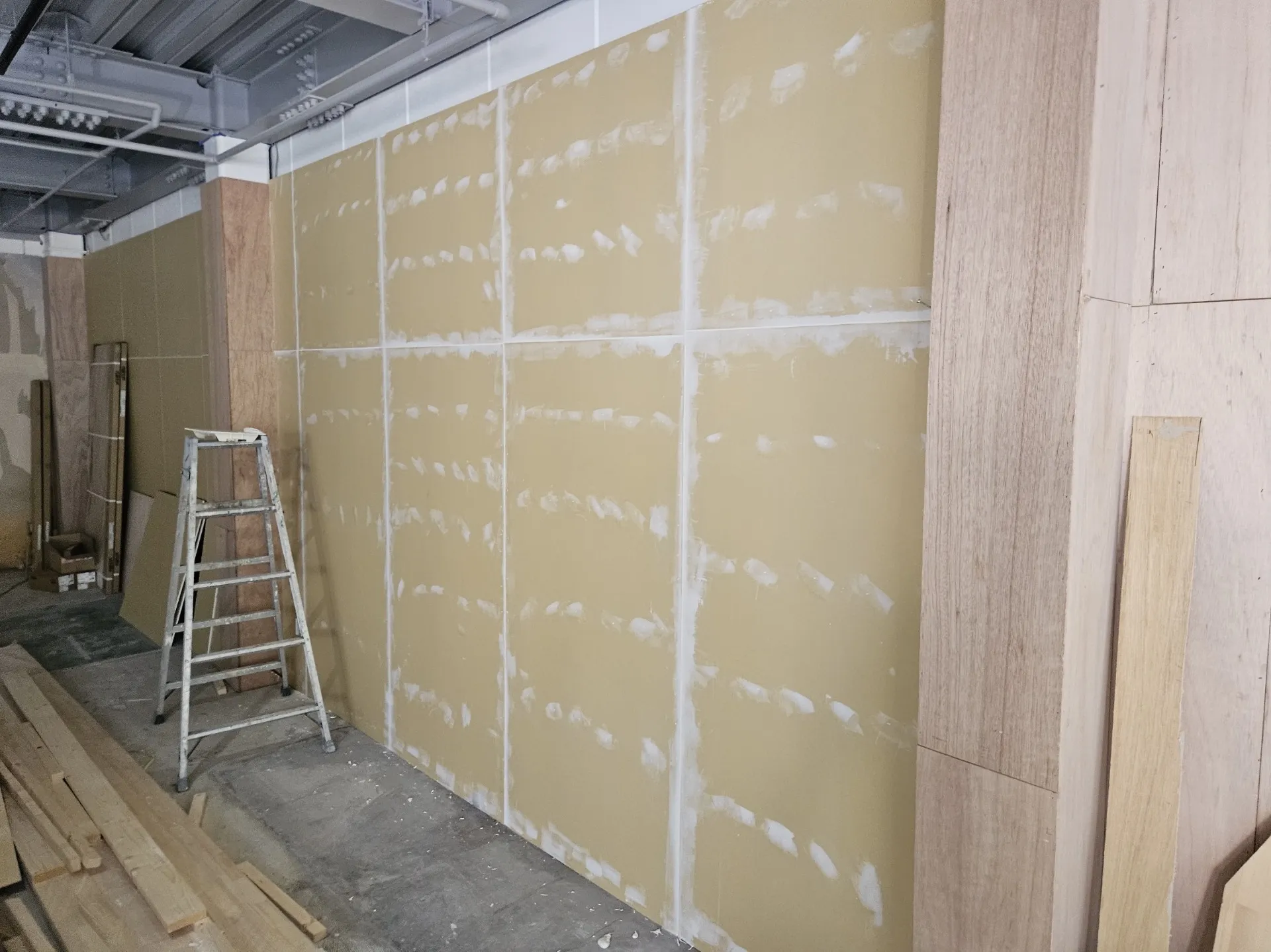 室内の壁にプロジェクターを使用して映像を投影する為の作業を進めております