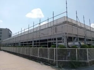 兵庫県川西市市役所前の駐車場 足場の解体工事を進めております