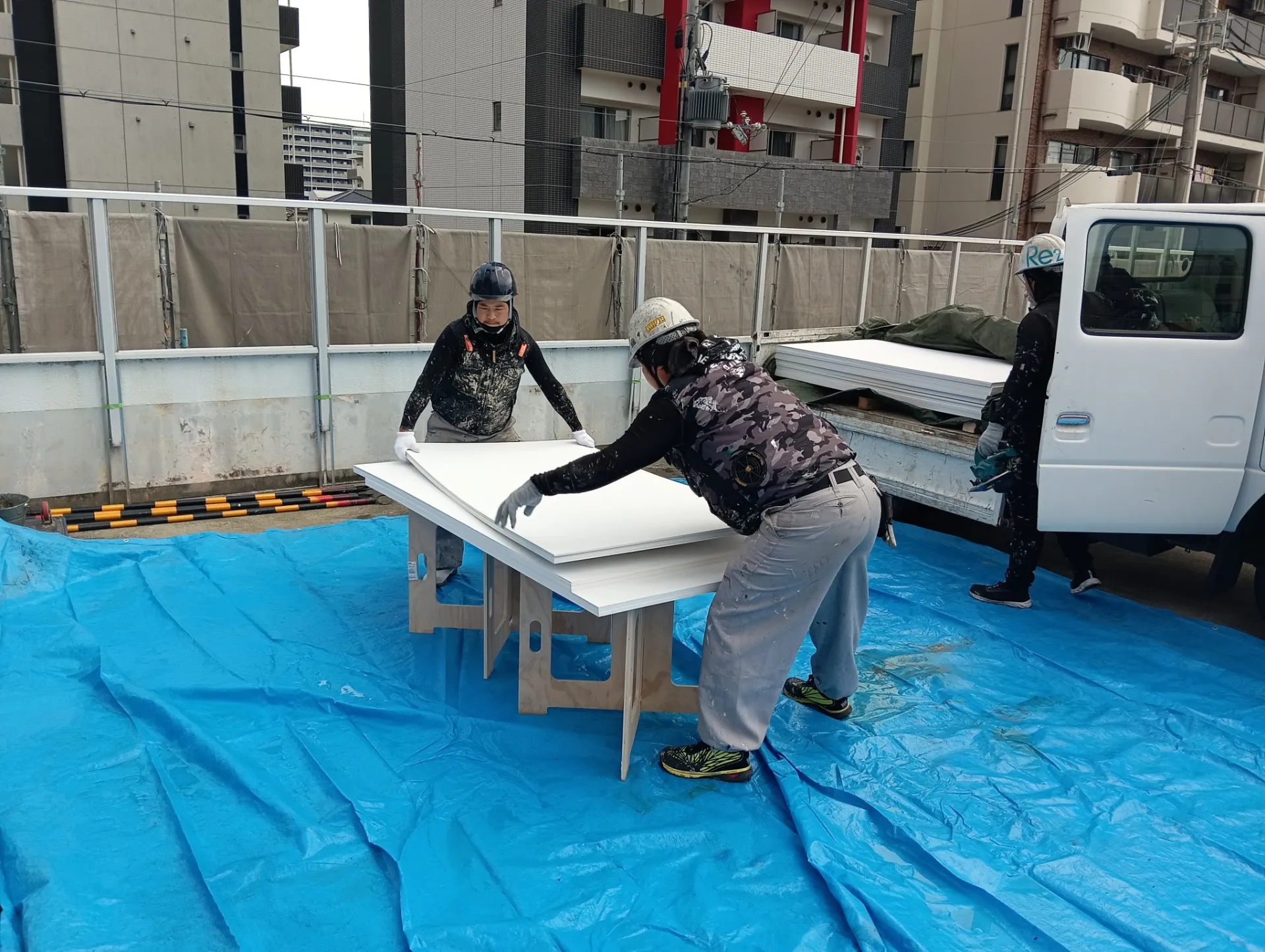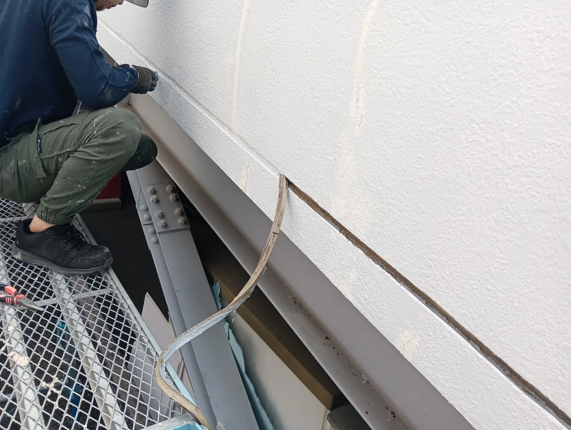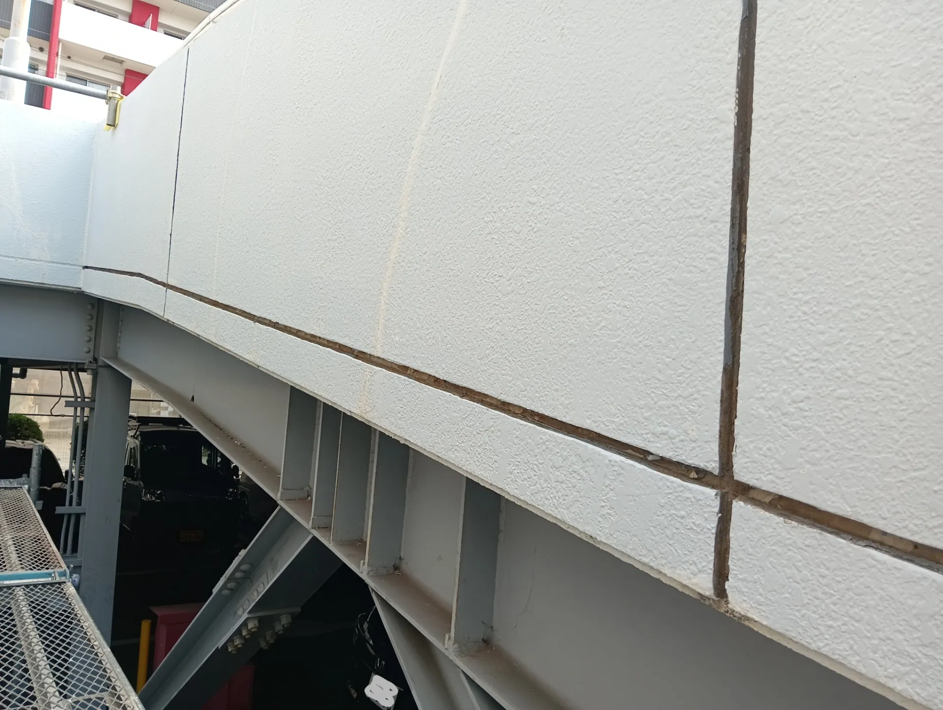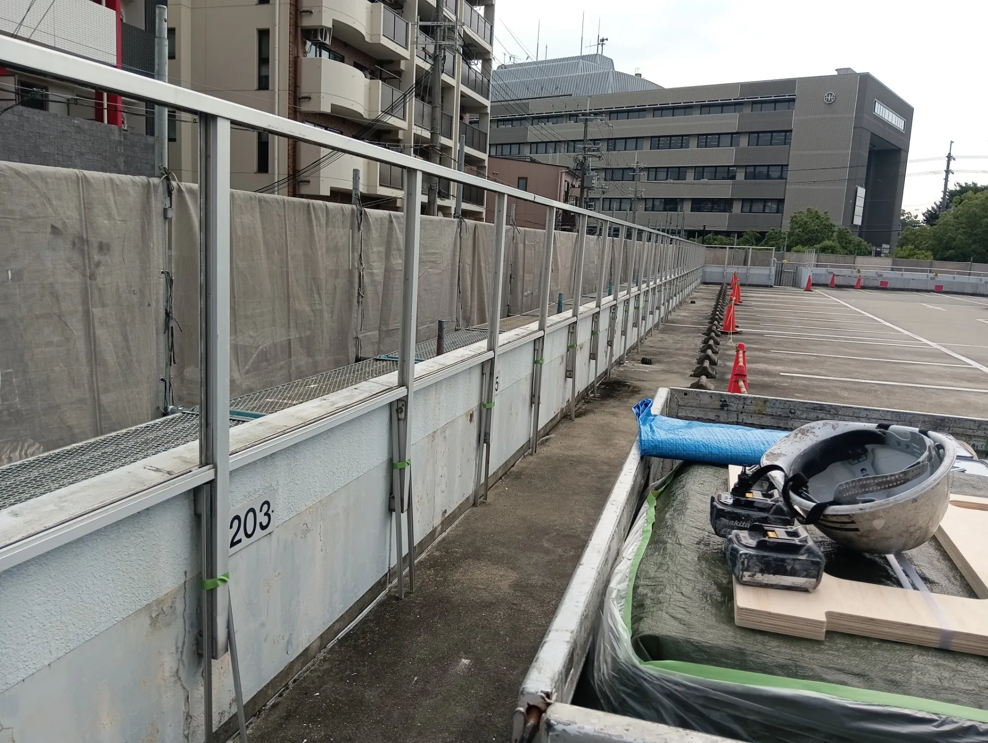 兵庫県川西市市役所前の駐車場 シーリング工事を進めております