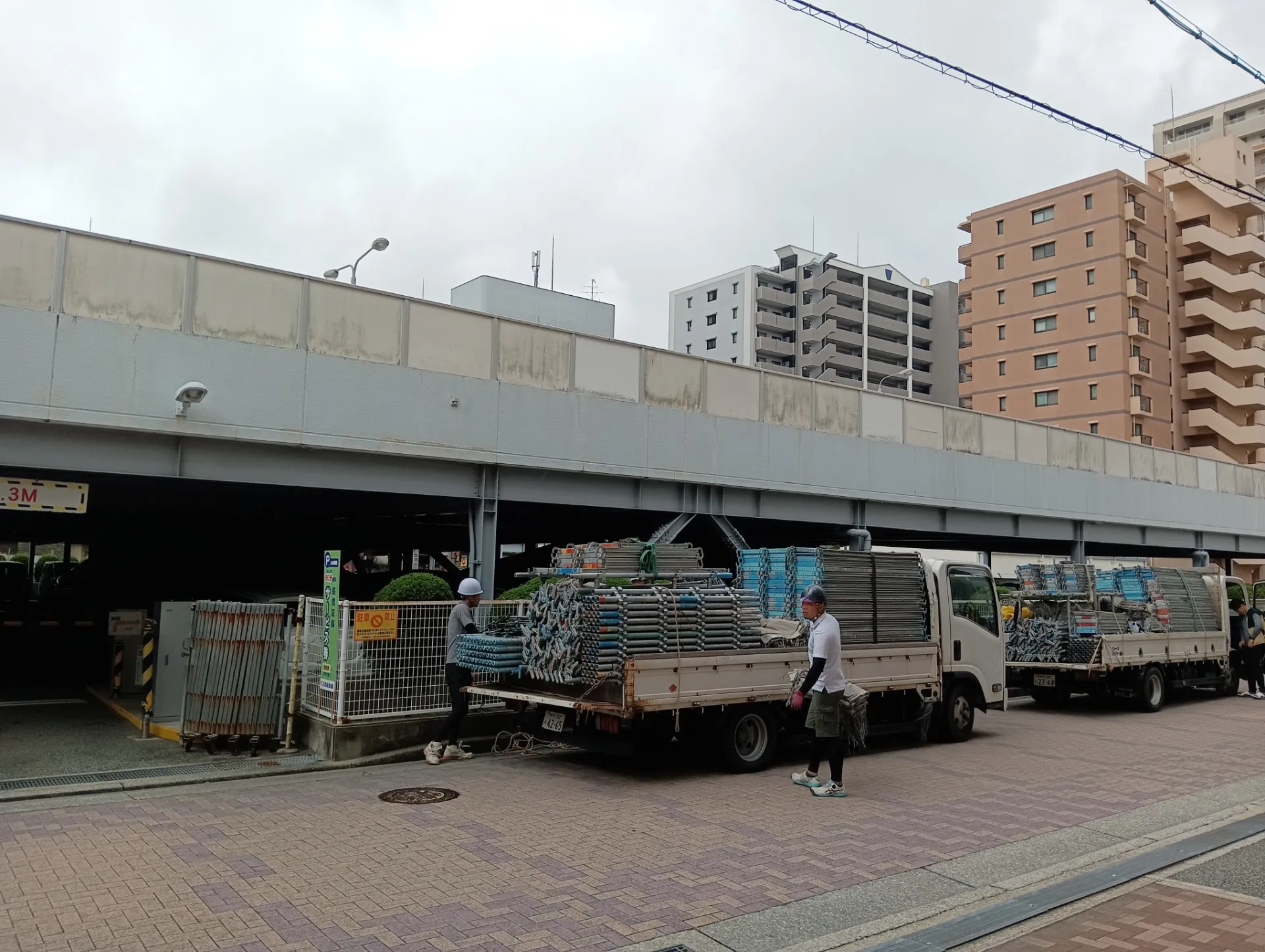 兵庫県川西市市役所前の駐車場 外壁塗装工事を開始いたしました