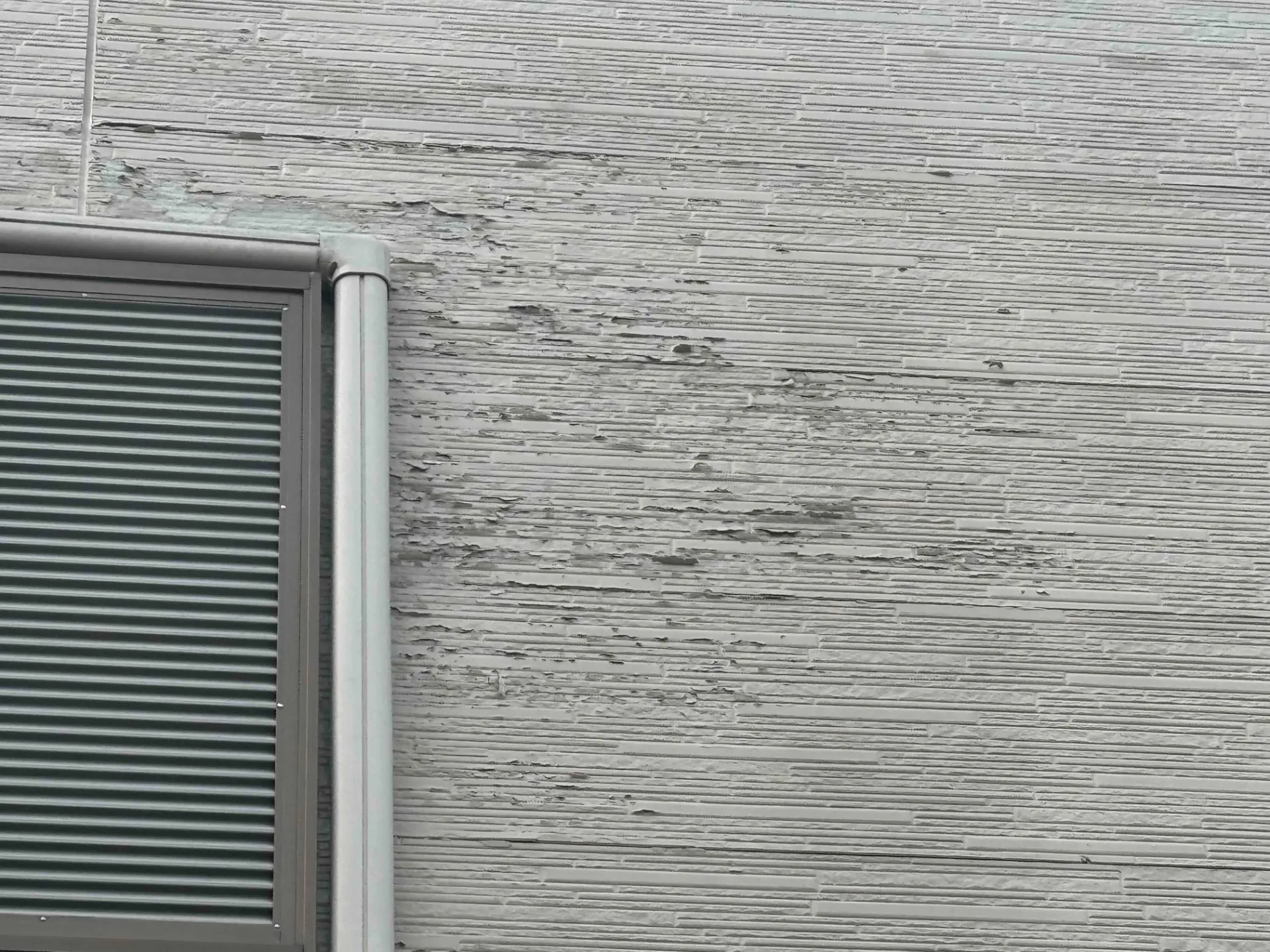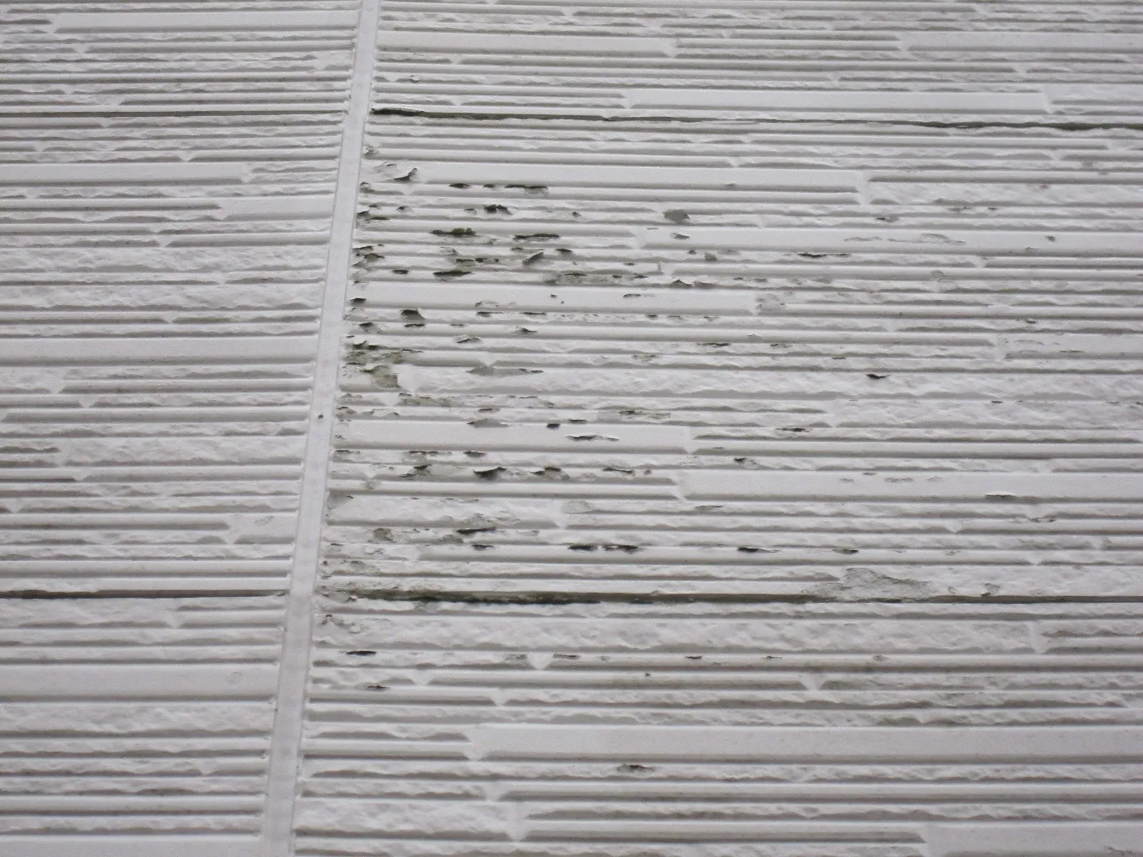 前回の塗装工事を請け負った塗装屋さんの塗料の選定ミスにより、外壁の塗膜が広範囲に剥がれている状態です