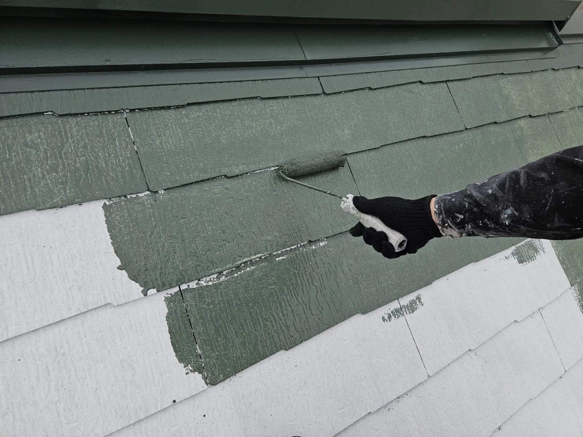 兵庫県神戸市東灘区T様邸 屋根の中塗り塗装を進めております