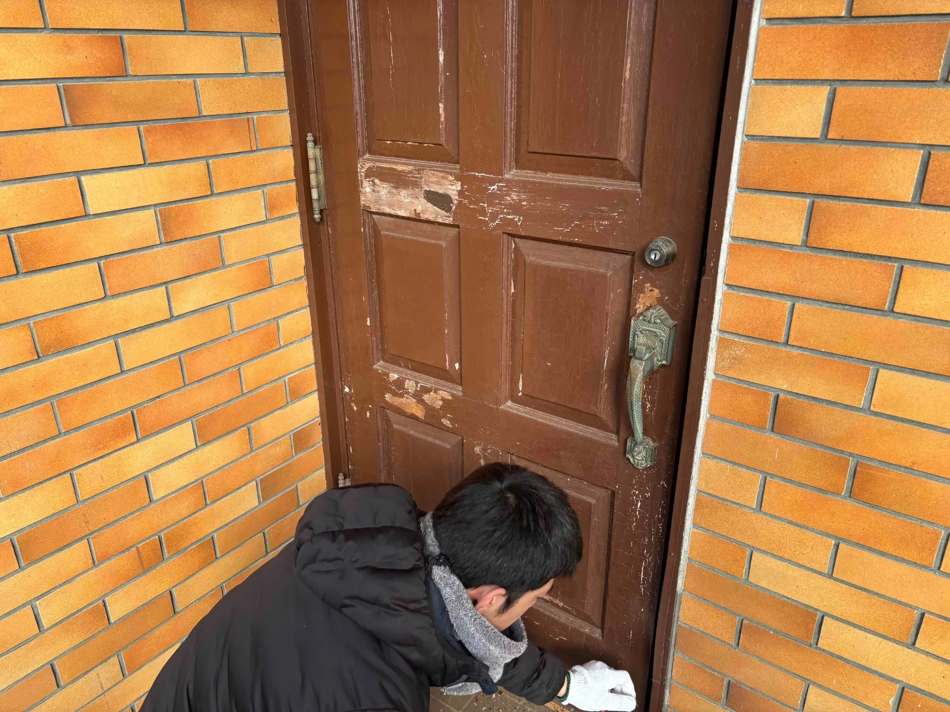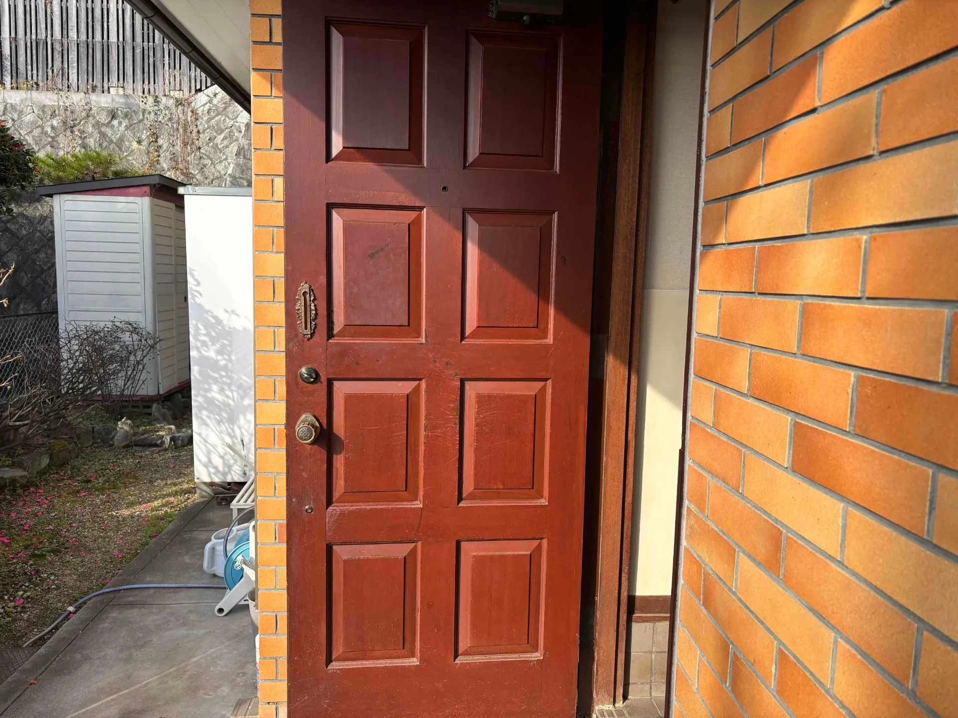 兵庫県宝塚市T様邸 木製玄関扉の塗装工事を開始しております