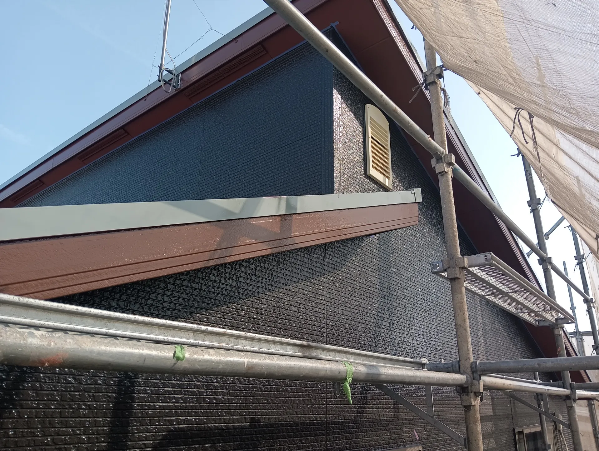 作業は終盤に差し掛かり、現在は付帯部分の塗装を進めております