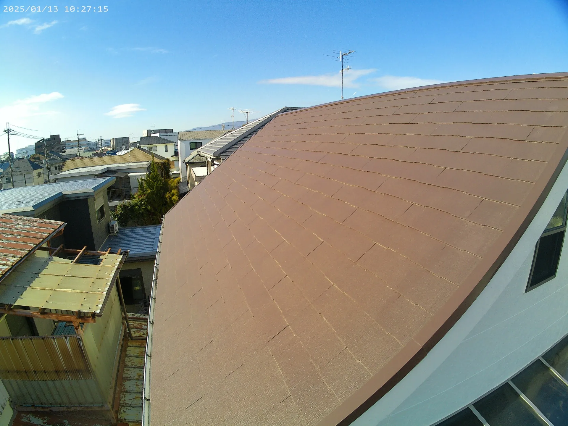 ウエスト技工では、塗装工事の完了後から2年毎に無料の定期点検を実施しております。その際に屋根の写真を撮影して、何か不具合はないか?などの点検を行っております