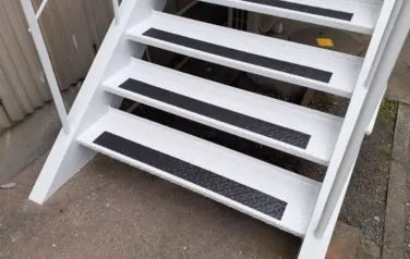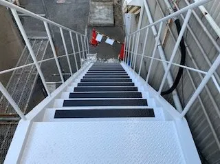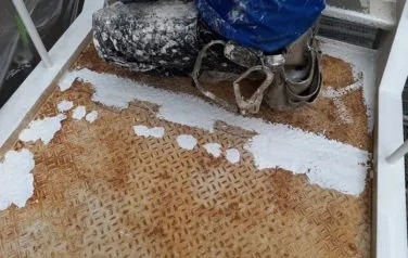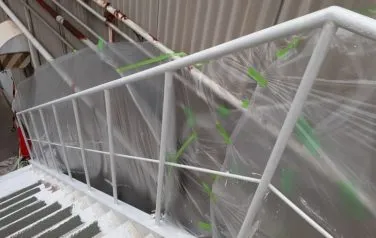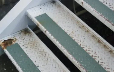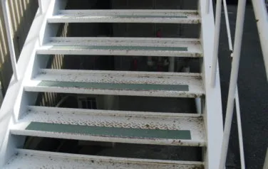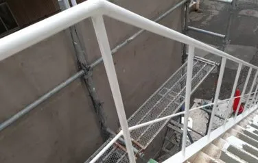 堺市内 某工場外部階段 2019/12/26 参考価格 工事期間 4日程度 工事内容 階段下地処理、階段錆穴あき箇所溶接補修、塗装、防滑シート貼り付け BEFORE AFTER 施工風景 施工担当者のコメント 錆の発生がひどく見受けられ鍛冶屋さんに溶接して直してもらい塗装しました。 下地処理を入念にし、高いグレードの塗料で施工したので長続きします。 雨の日の転倒防止のための防滑シートも貼りました。 その他塗装