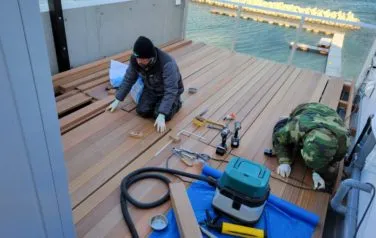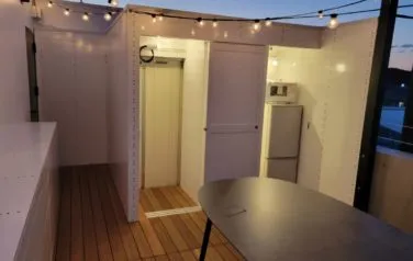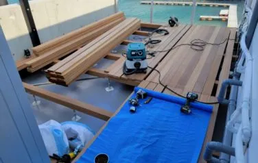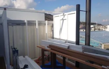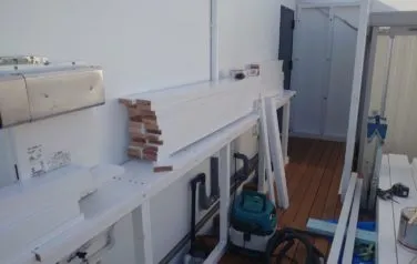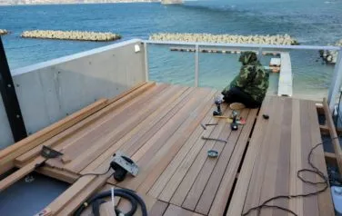 [テナント工事]兵庫県淡路市 グランピング施設 2022/03/01 参考価格 工事期間 1ヵ月 工事内容 ウッドデッキ造作、スライド扉造作、ウッドデッキ塗装、付帯物塗装、電気工事、水道工事、グリストラップ取り付け、落下防止ワイヤー取り付け、給湯器カバー制作取り付け、 BEFORE AFTER 施工風景 施工担当者のコメント オーナー様との綿密な打ち合わせにより良い作品ができました。 その他塗装