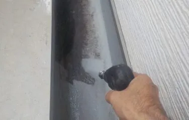既存のシーリングをカッターで切り取って、新しいシーリングが密着する様にプライマーを塗っていきます