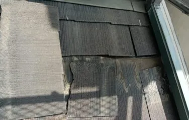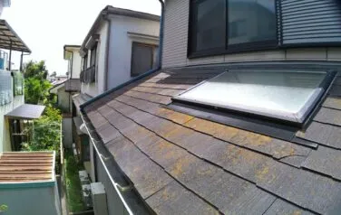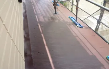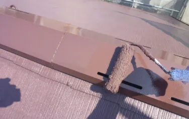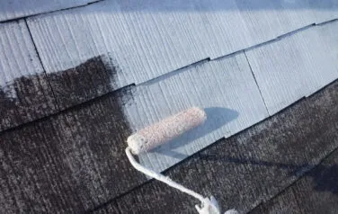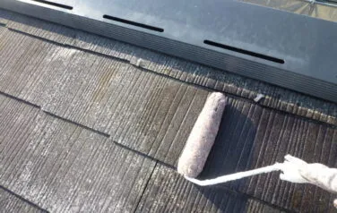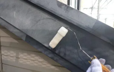 屋根の下塗り塗装の1回目です。劣化が激しい屋根材には下塗りを2回行う必要があります