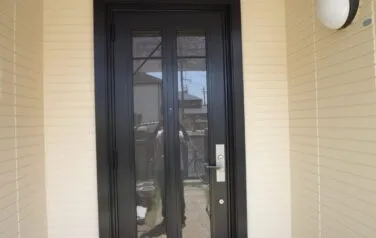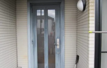 玄関扉の塗装は珍しいのですが、色褪せが激しかったので同じく塗装を行いました