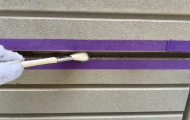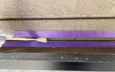 既存のシーリングをカッターで切り取って、新しいシーリングが密着する様にプライマーを塗っていきます