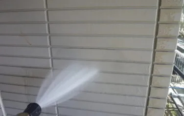 シーリング工事が終わり、もう雨漏りの心配がなくなりましたので高圧洗浄を開始していきます