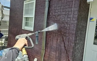 最初に高圧洗浄を行い、長年蓄積した外壁の汚れを洗い流していきます