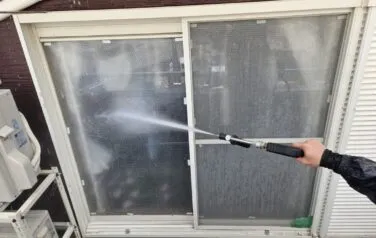外壁と一緒に窓ガラスも洗い流していきます