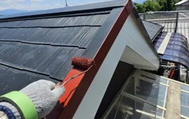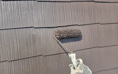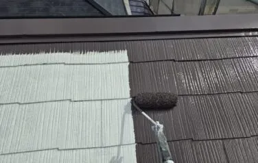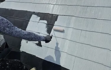 屋根の下塗り塗装が終わり、中塗り塗装へと進んでいきます
