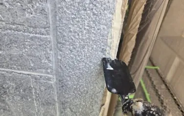 外壁の下塗り塗装が終わり、外壁のひび割れ部のシーリング補修を行います