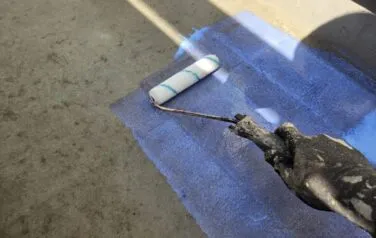 ベランダのFRP防水も専用塗料にて塗装を行います。最初に下塗り塗装を行います