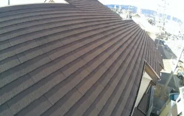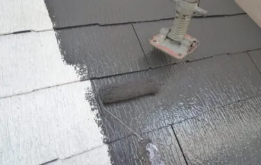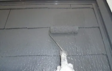 屋根の上塗り塗装です。外壁と同様にしっかりとした塗膜を形成しております