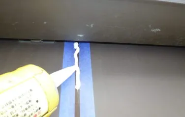 塗装作業の開始前に、隙間が空いている部分にシーリングを詰めて補修を行います