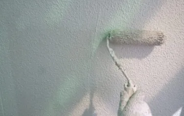 ビニール養生作業が終わると、外壁の下塗り塗装を進めていきます