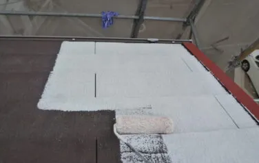 屋根の下塗り塗装です。外壁塗装と並行して屋根の塗装も進めていきます