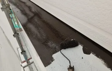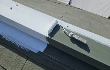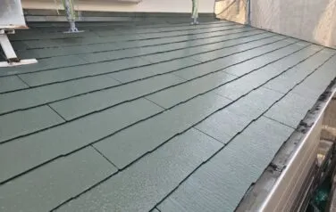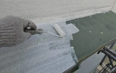屋根の下塗り塗装です。白色の下塗り塗料を使用しておりますので、塗り残しの有無がはっきりとわかる利点があります