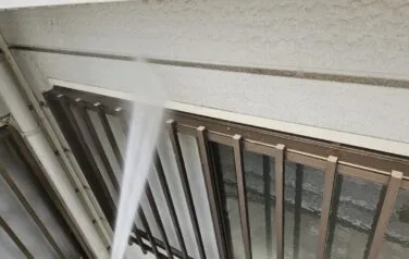 外壁の高圧洗浄です。上から順番に洗い流していきます
