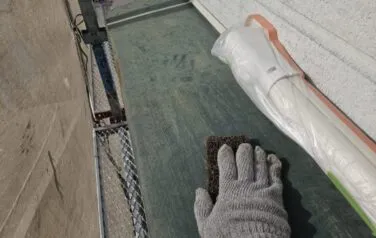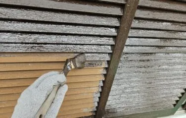 付帯部分の下塗り塗装をする前にケレン作業を行います