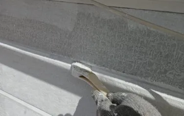 外壁の下塗り塗装です。ローラーではしっかりと塗装が出来ない部分には、ハケを使用して塗装を行います