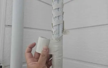 劣化して剥がれているエアコンホースのテープを新しいテープに巻き直しました