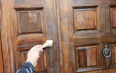 木製玄関扉塗装-