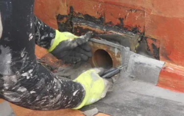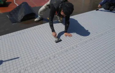 そしてひび割れ部などにシーリング補修を行います。防水工事も下地処理が重要です