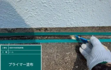 外壁の下塗り塗装の前に、ひび割れ部分にシーリング補修を行います