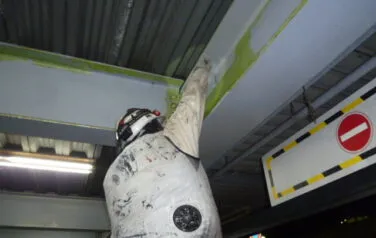 上塗り塗装を進める前に、錆を封じる事ができる特殊な下塗り塗料を塗装していきます