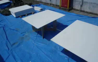 新しいケイカル板を切断後、塗装をしてから設置をしていきます