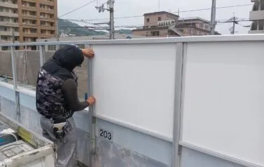 兵庫県川西市の市役所前の駐車場という事もあり、非常に目立つ立地での工事のご依頼を頂きました。外壁塗装工事だけではなく、2階部分の目隠しのケイカル板の張り替え作業や、2階部分の床の補修工事や鉄骨塗装など、様々な工事をお任せ頂き、それらを全て自社施工にてご対応させて頂きました。