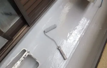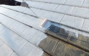 屋根の下塗り塗装です。外壁同様に白色の下塗り塗料を使用しております