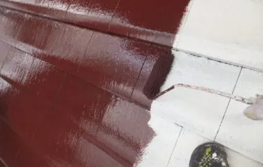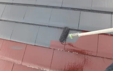 屋根の上塗り塗装です。屋根も3回塗りが基本です