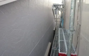 塗装工事の前は1色だけの外壁でしたが、この度の塗装工事では2色での塗り分けをお選び頂きました。薄いグレー色と濃いグレー色の同系色での塗り分けで、シンプルながらカッコいい仕上がりとなりました。