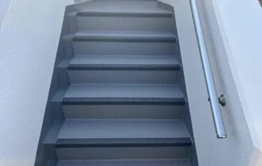 長尺(ノンスリップ)シート貼工事のご依頼を頂きました。一番上の階は特に雨水や紫外線の影響を受ける為、他の階と比べても経年劣化が進行している状態でした。