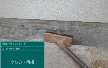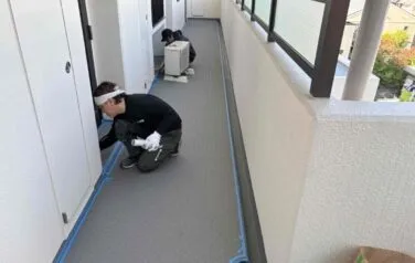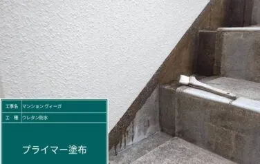 ウレタン塗膜防水の下塗り塗装を進めていきます