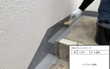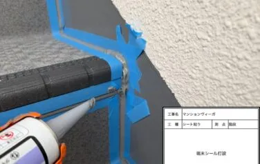シートの端から雨水が入らないようにシーリングの打設を行います