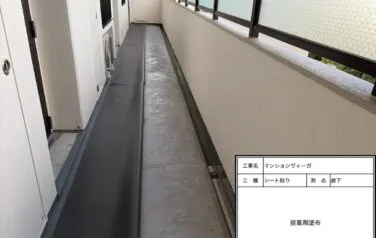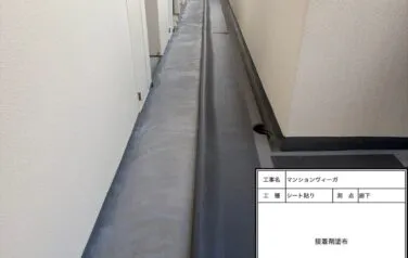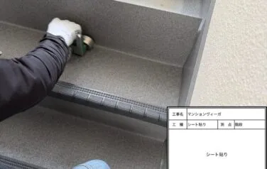 そこでしっかりと下地処理を行い、万全な状態にしてからシート貼り作業を進めております。