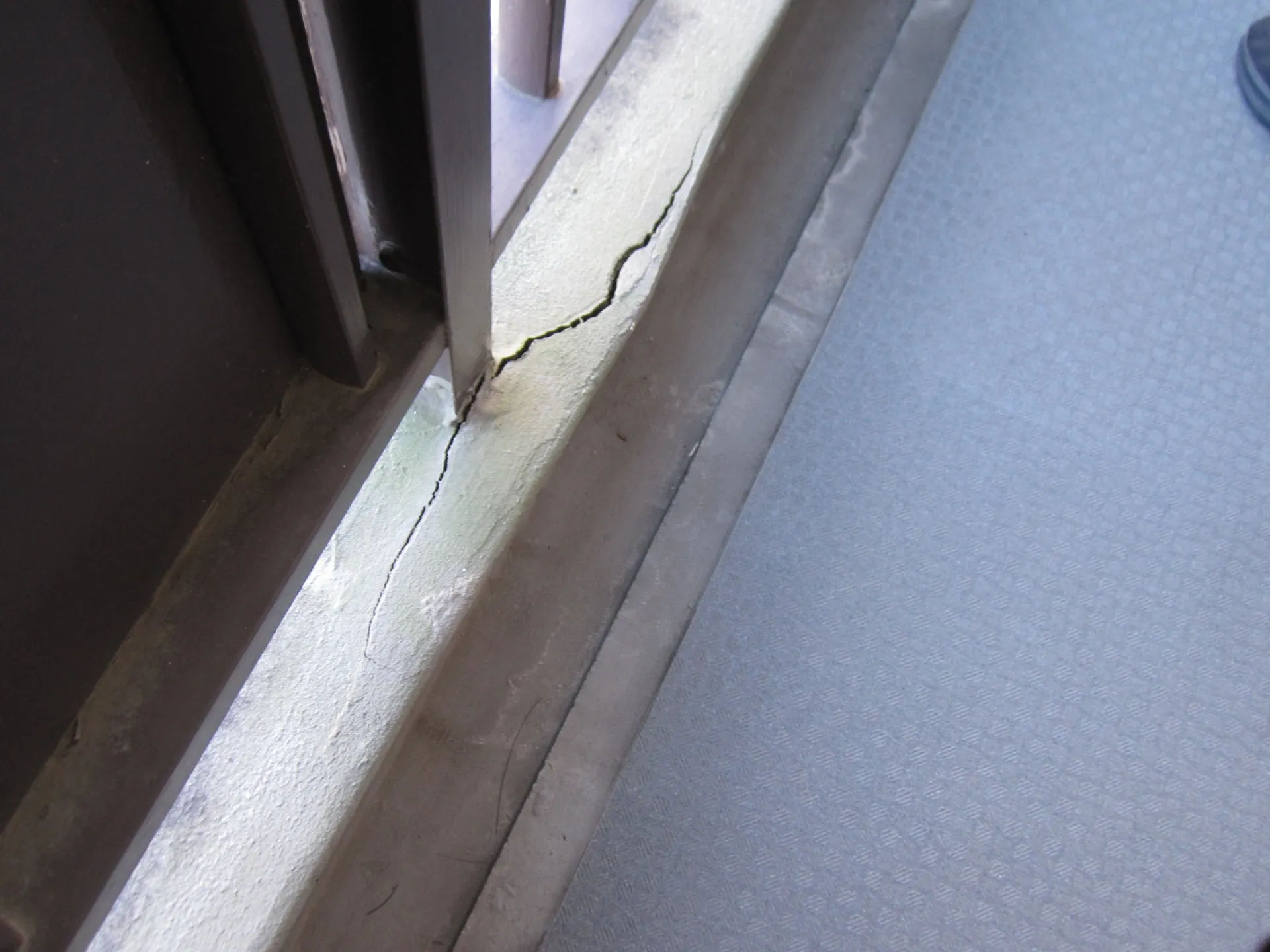 大きくて太いひび割れが外壁に多数発生している状態でした。